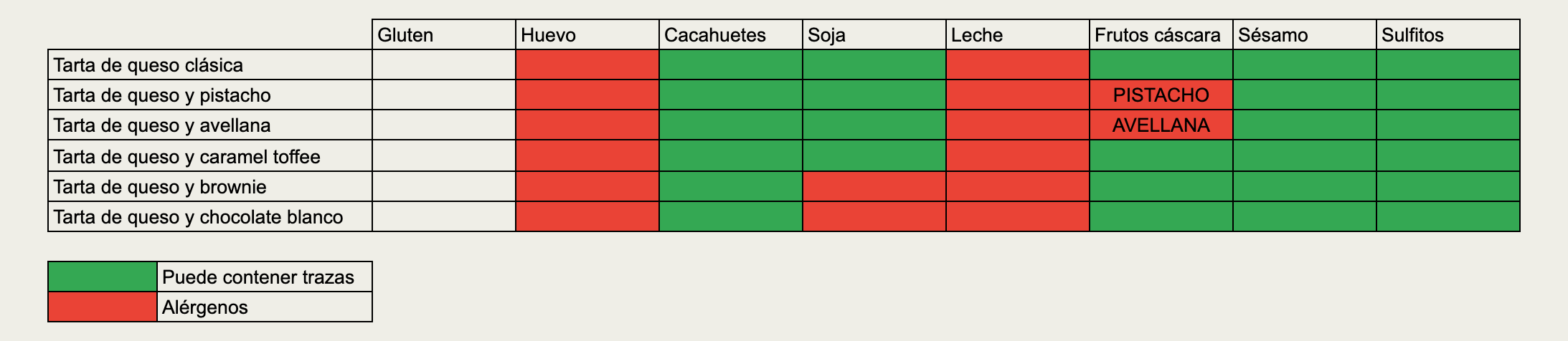 Ficha técnica y alérgenos